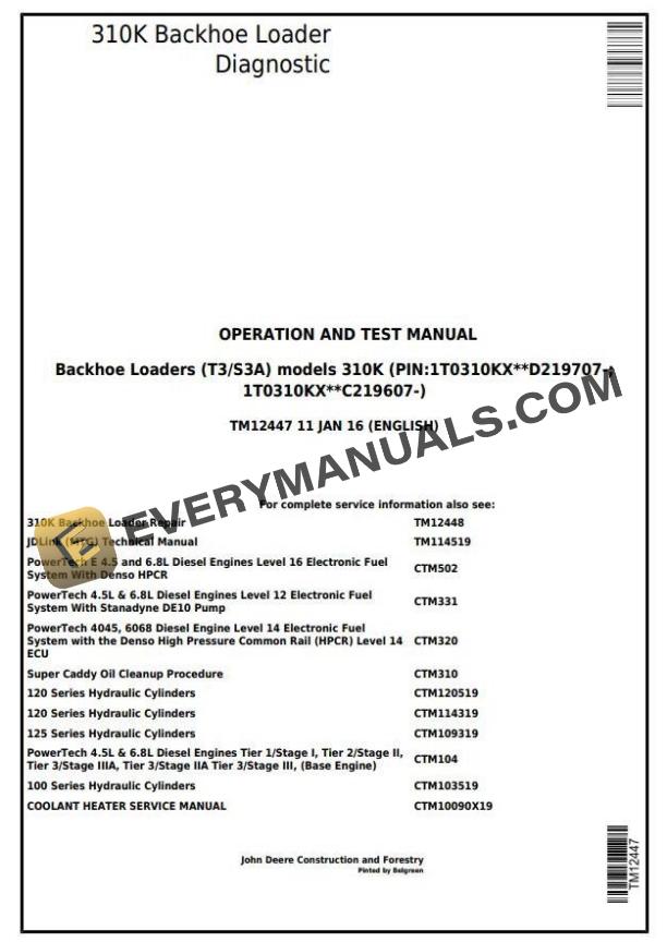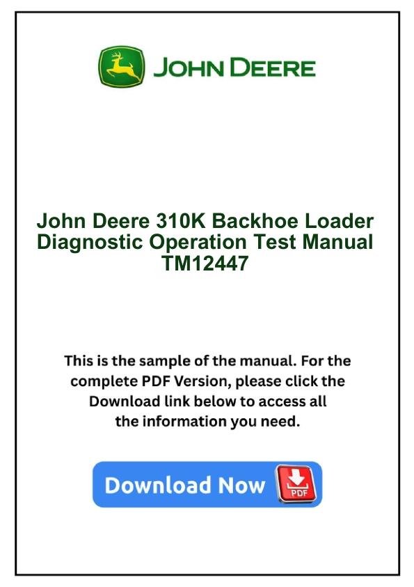 John Deere 310K Backhoe Loader Diagnostic Operation Test Manual TM12447