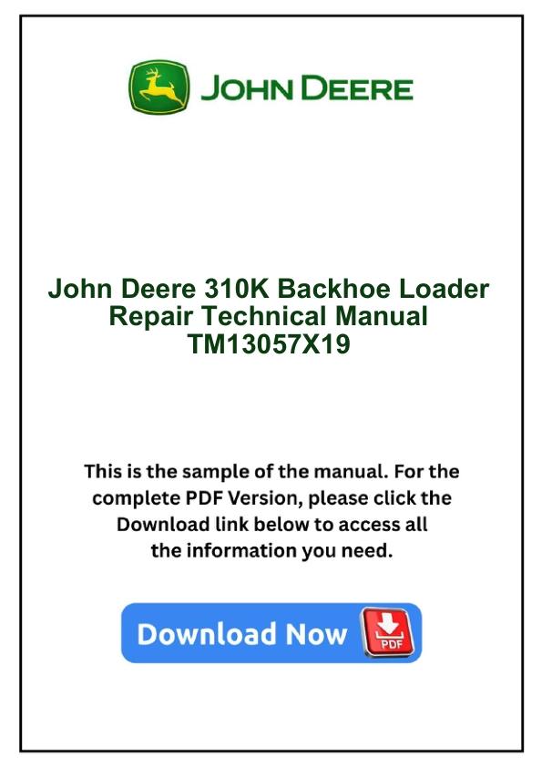 John Deere 310K Backhoe Loader Repair Technical Manual TM13057X19 by manualgroup - Issuu