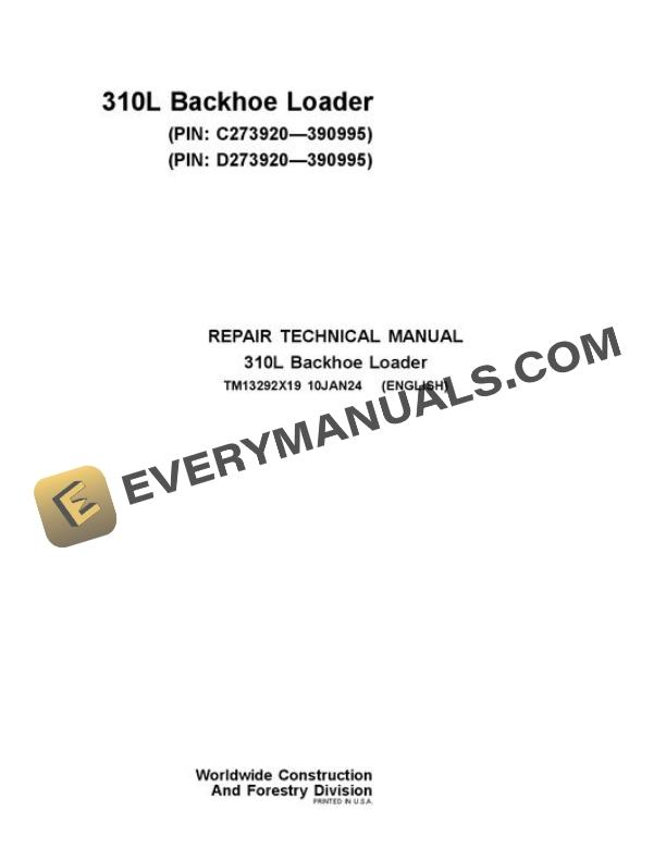 John Deere 310L Backhoe Loader Repair Manual TM13292X19