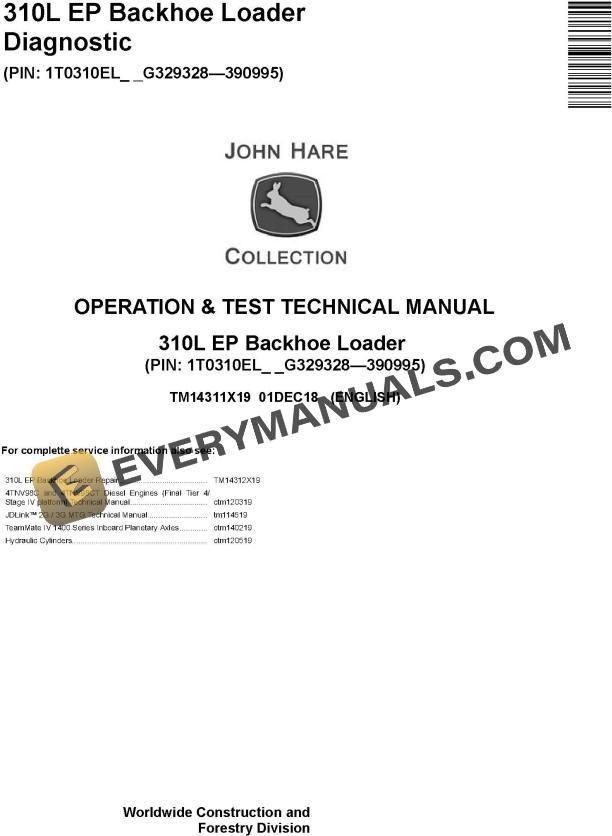 John Deere 310L EP Backhoe Loader Operation Test Technical Manual TM14311X19