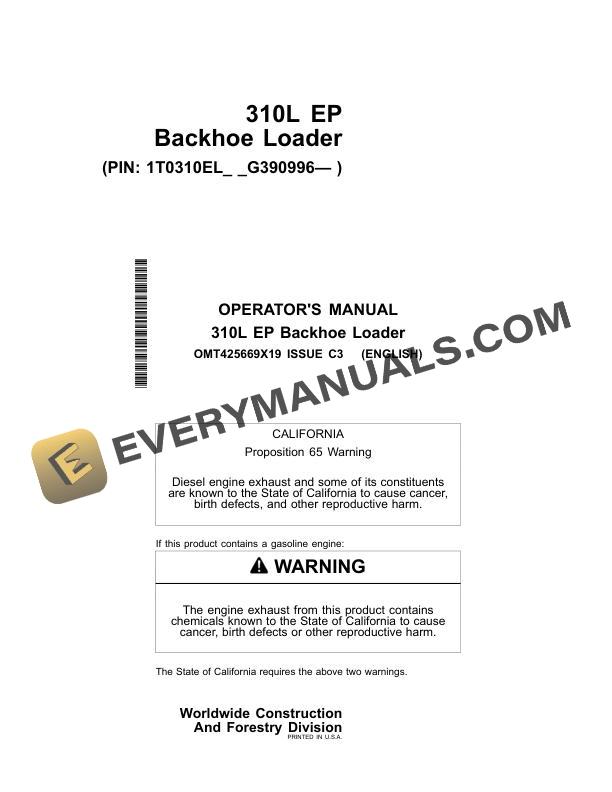 John Deere 310L EP Backhoe Loader Operator Manual OMT425669X19 by manualgroup - Issuu
