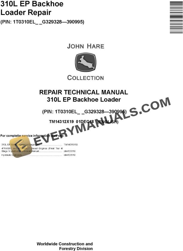 John Deere 310L EP Backhoe Loader Repair Technical Manual TM14312X19