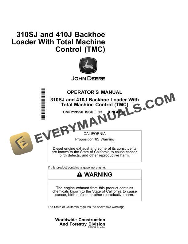 John Deere 310SJ 410J Backhoe Loader With Total Machine Control (TMC) Operator Manual OMT219550 by manualgroup - Issuu
