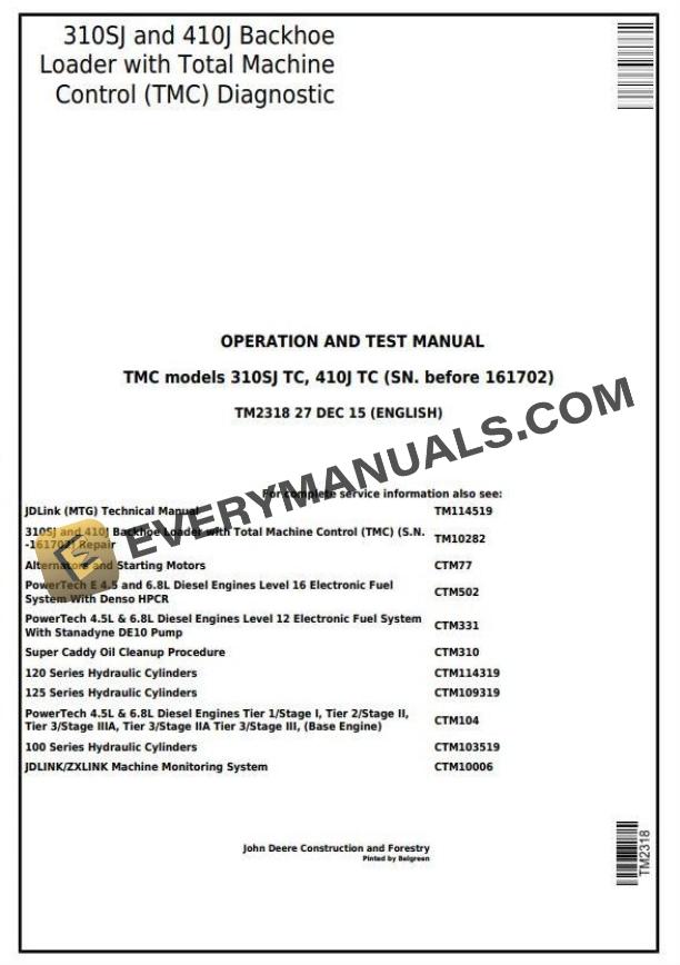 John Deere 310SJ 410J TC TMC Backhoe Loader Diagnostic Operation Test Manual TM2318