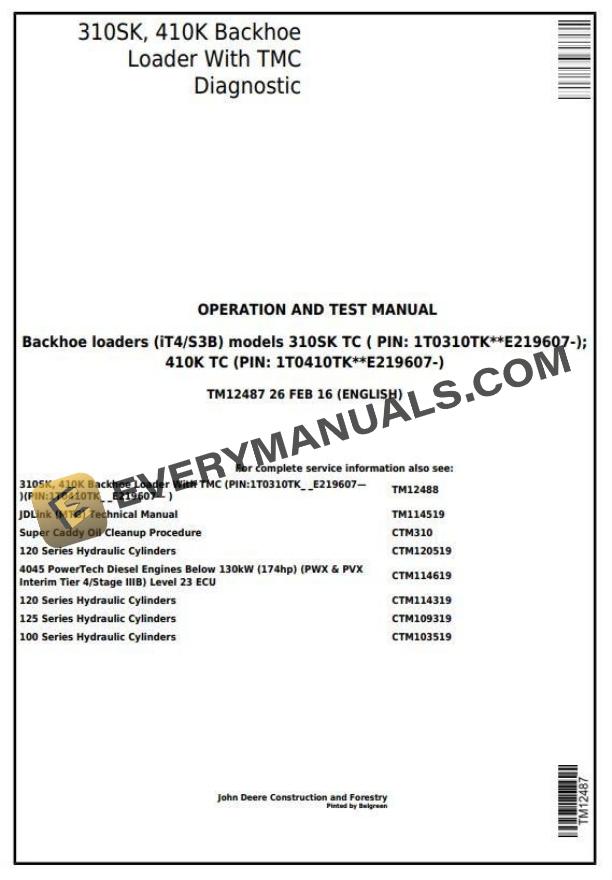 Model: 310SK TC ( PI 1T0310TK**E219607-), 410K TC (PIN: 1T0410TK**E219607-), with TMC (iT4/S3B)