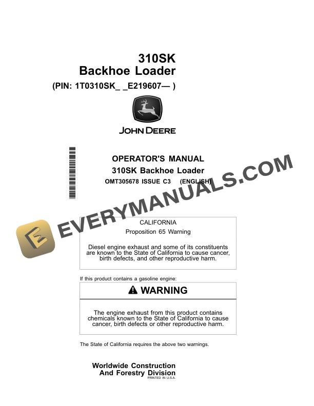 John Deere 310SK Backhoe Loader Operator Manual OMT305678
