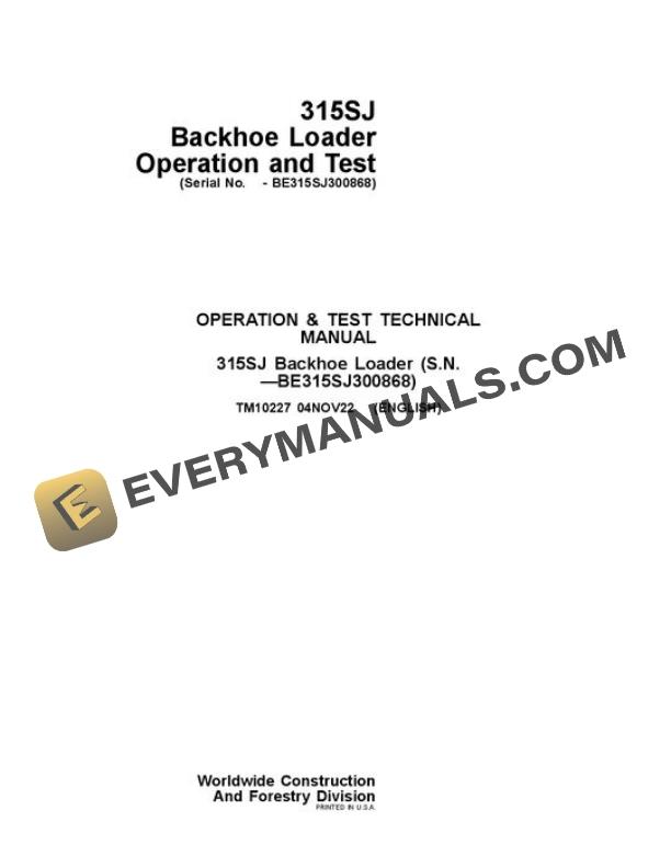 John Deere 315SJ Backhoe Loader Test Manual TM10227 by manualgroup - Issuu