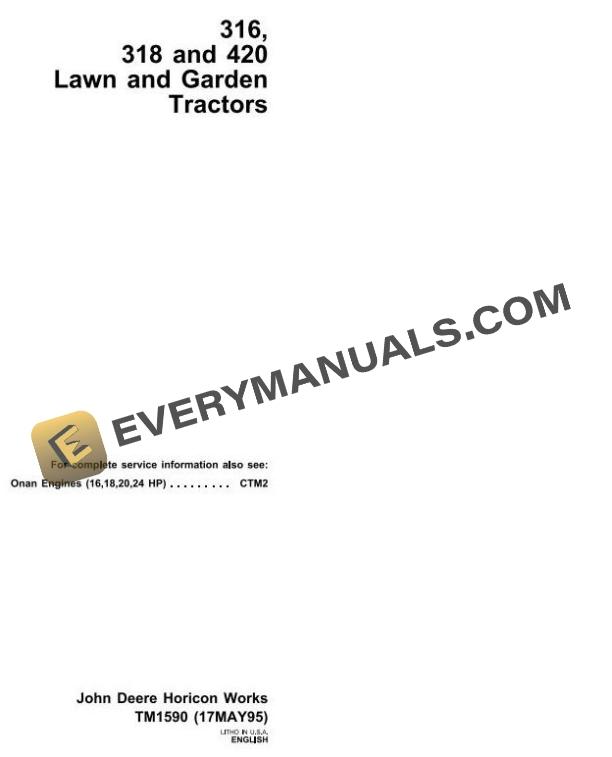 John Deere 316 318 420 Lawn Garden Tractor Technical Manual TM1590 by manualgroup - Issuu