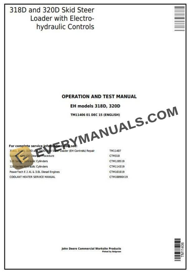 John Deere 318D 320D Skid Steer Loader Operation Test Manual TM11406