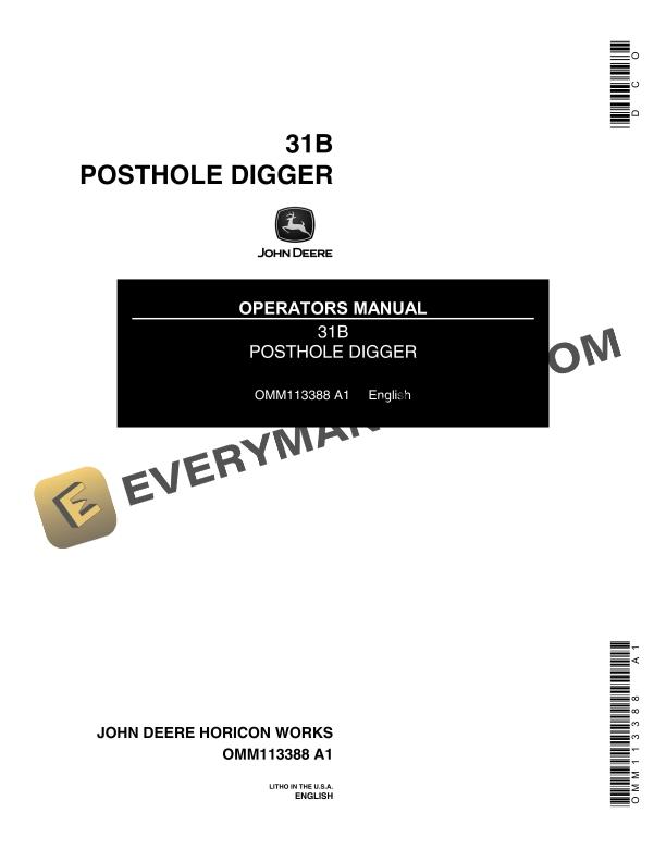 John Deere 31B POSTHOLE DIGGER Operator Manual OMM113388 by manualgroup - Issuu
