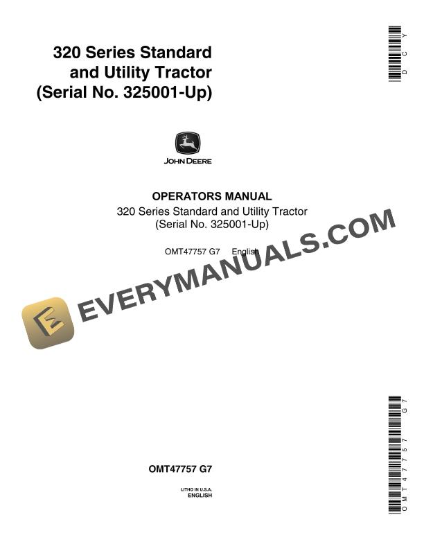 John Deere 320 Series Standard And Utility Tractors Operator Manual OMT47757 by manualgroup - Issuu