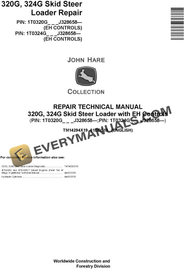 Model: 320G (PIN: 1T0320G_ _ _J328658—, EH CONTROLS), 324G (PIN: 1T0324G_ _ _J328658—, EH CONTROLS)