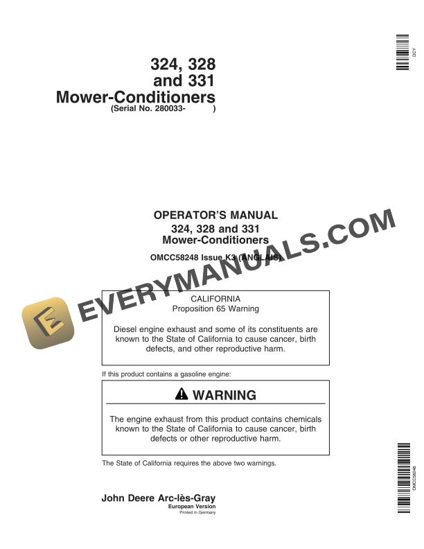 John Deere 324, 328 and 331 Mower-Conditioner Operator Manual OMCC58248