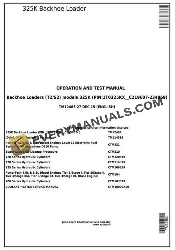 John Deere 325K Backhoe Loader Operation Test Manual TM12483