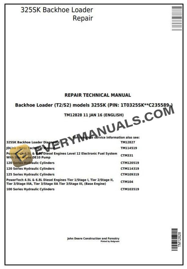 John Deere 325SK Backhoe Loader Repair Technical Manual TM12828