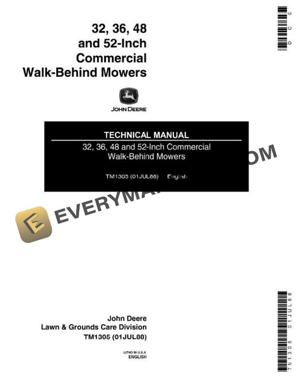 John Deere 32 36 48 52 inch Commercial Walk-Behind Mowers Technical Manual TM1305