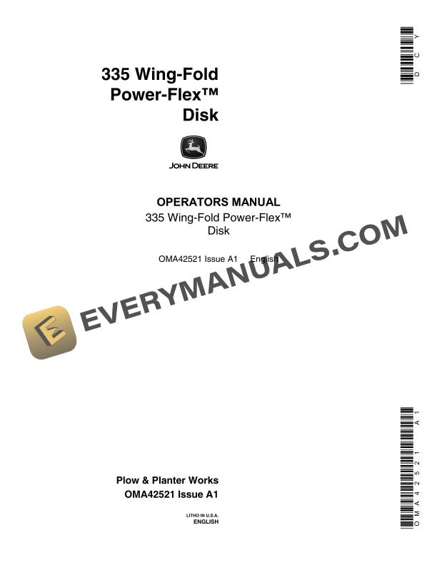 John Deere 335 Wing-Fold Power-Flex Disk Operator Manual OMA42521