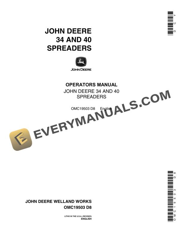 John Deere 34 AND 40 SPREADER Operator Manual OMC19503