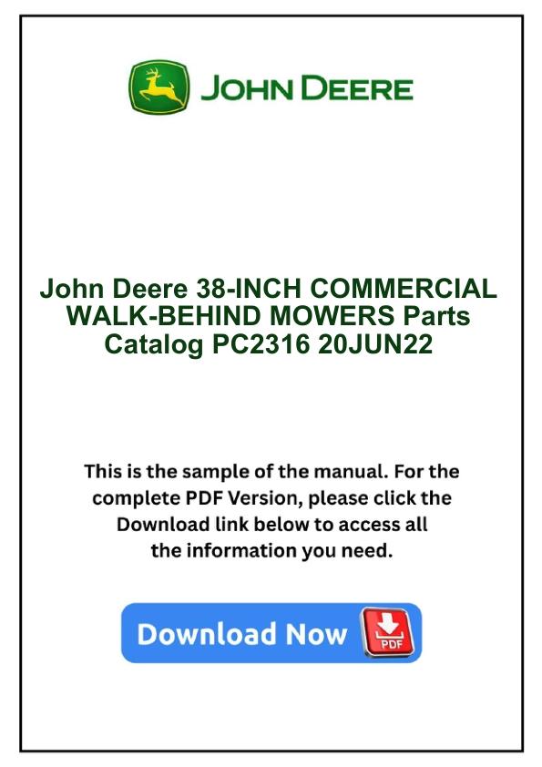 John Deere 38-INCH COMMERCIAL WALK-BEHIND MOWERS Parts Catalog PC2316 20JUN22