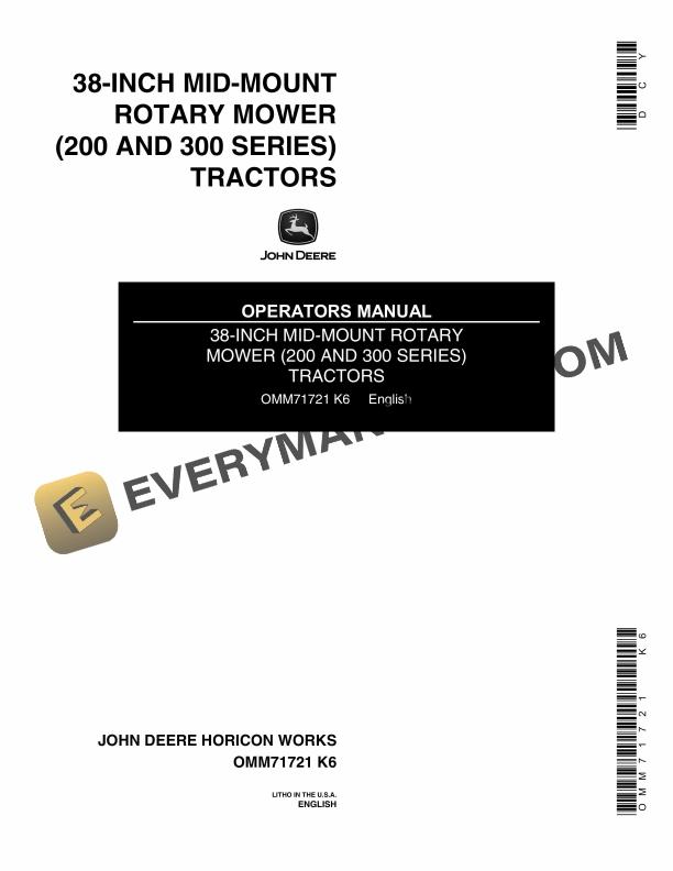 John Deere 38-INCH MID-MOUNT ROTARY MOWER Operator Manual OMM71721