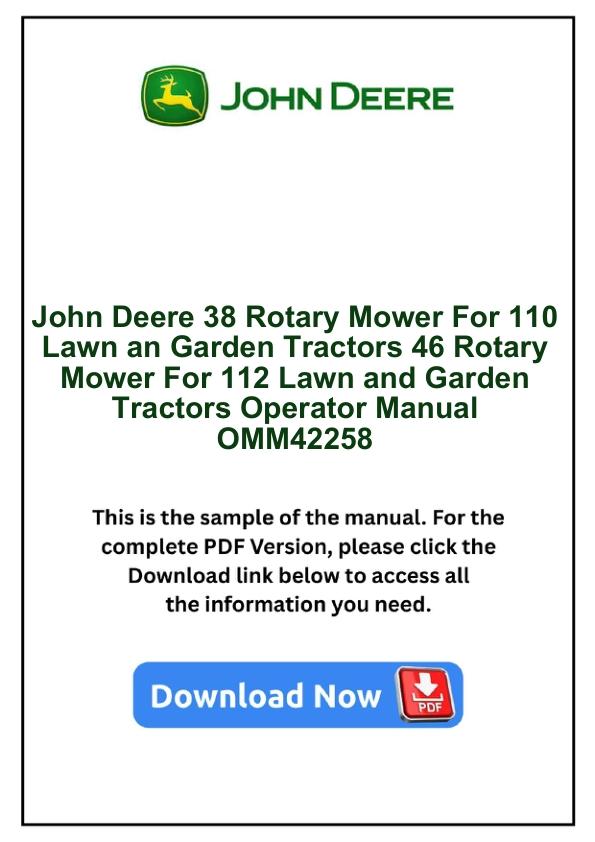 John Deere 38 Rotary Mower For 110 Lawn an Garden Tractors 46 Rotary Mower For 112 Lawn and Garden T