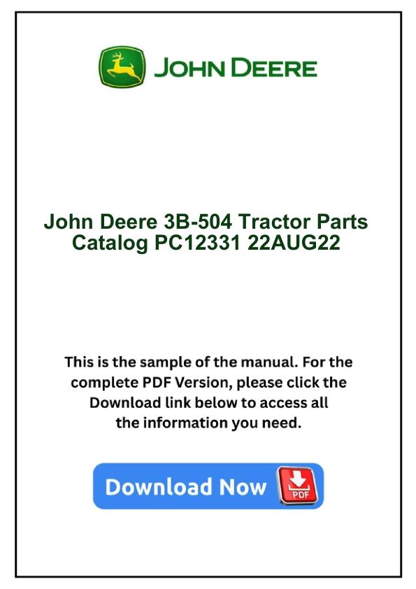 John Deere 3B-504 Tractor Parts Catalog PC12331 22AUG22