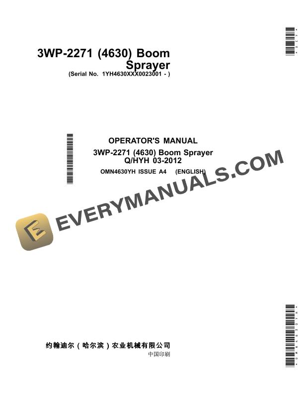 John Deere 3WP-2271 (4630) Boom Sprayer Operator Manual OMN4630YH