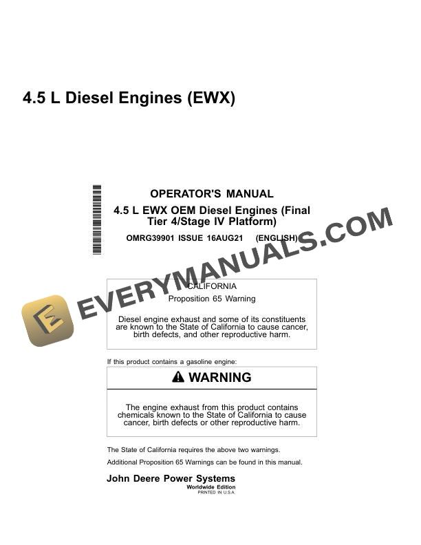 John Deere 4.5L EWX OEM Diesel Engine (Final Tier 4 Stage IV Platform) Operator Manual OMRG39901 by manualgroup - Issuu