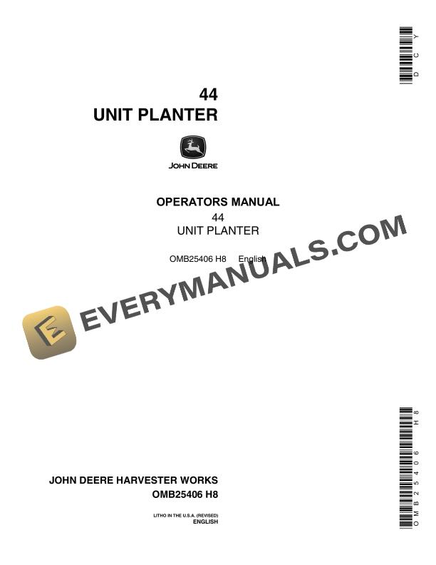 John Deere 44 UNIT PLANTER Operator Manual OMB25406