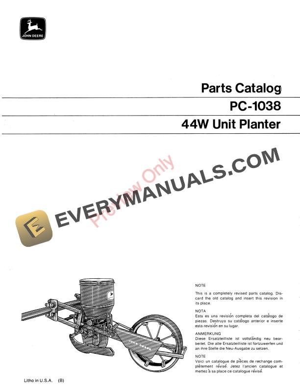 John Deere 44W Unit Planter Parts Catalog PC1038 01JAN70