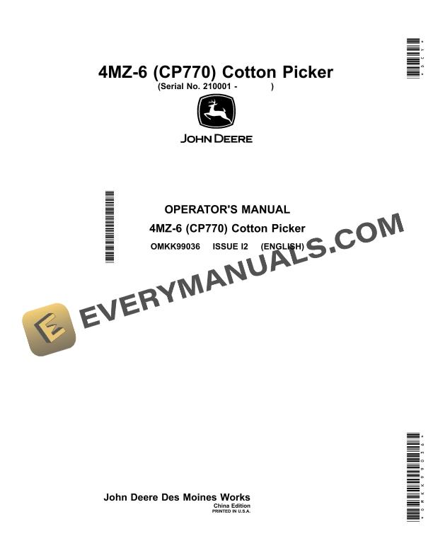 John Deere 4MZ-6 (CP770) Cotton Picker Operator Manual OMKK99036