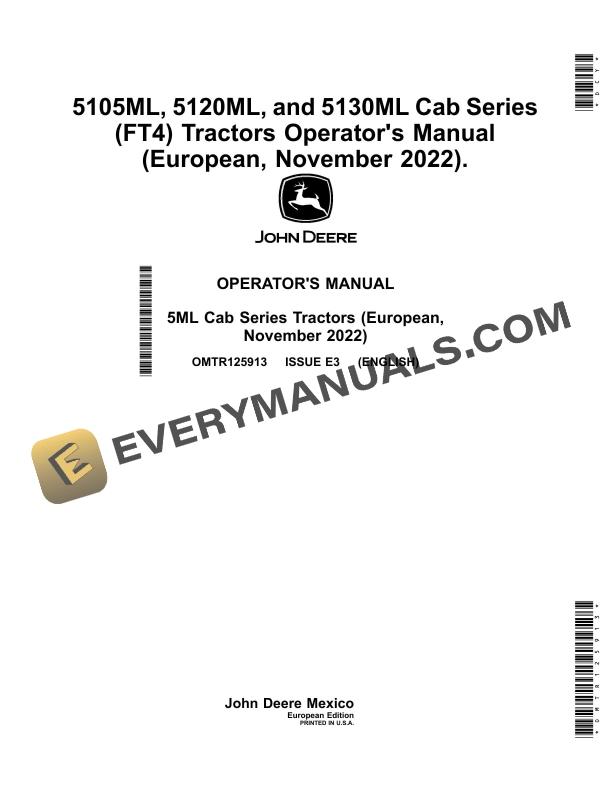 John Deere 5ml Cab Series Tractors Operator Manuals OMTR125913