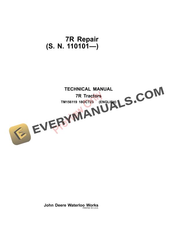 John Deere 7R (S. N. 110101_) Technical Manual TM156119 18OCT23 by manualgroup - Issuu