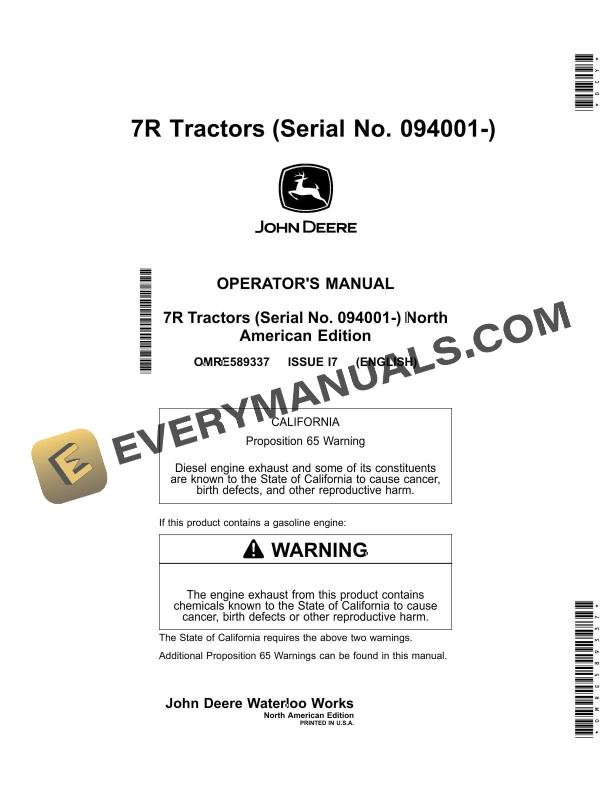 John Deere 7R Tractor Operator Manual OMRE589337 by manualgroup - Issuu