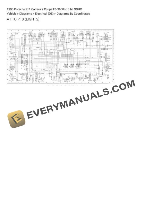 Porsche 911 Carrera 2 Coupe 1990 Electrical Diagrams F6-3600cc 3.6L SOHC