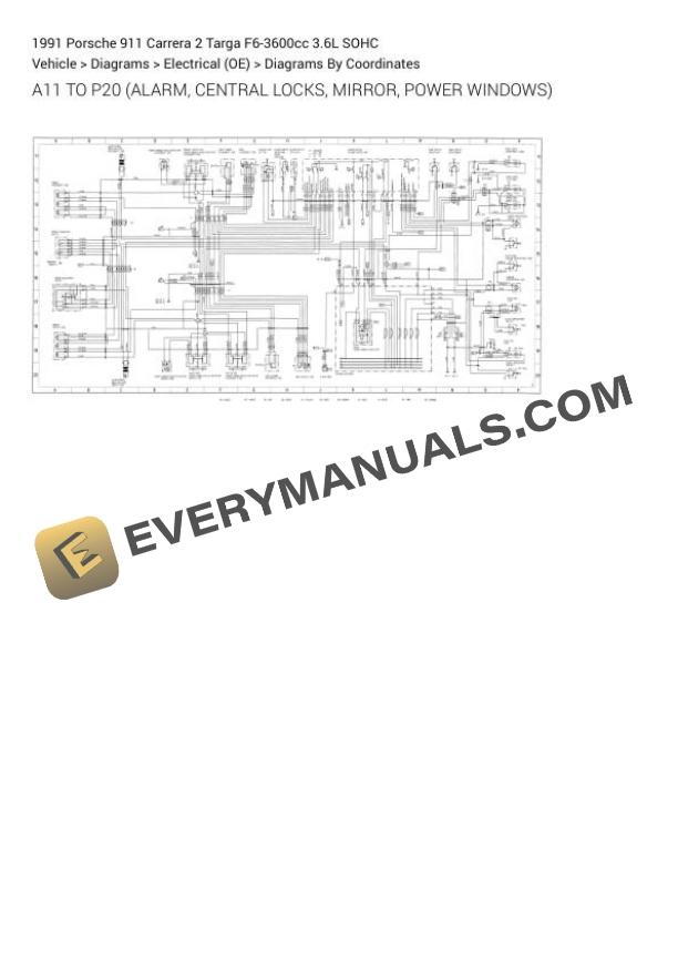 Porsche 911 Carrera 2 Targa 1991 Electrical Diagrams F6-3600cc 3.6L SOHC