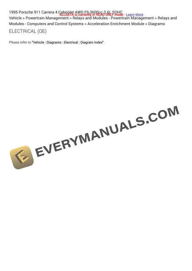 Porsche 911 Carrera 4 Cabriolet AWD 1995 Electrical Diagrams F6-3600cc 3.6L SOHC