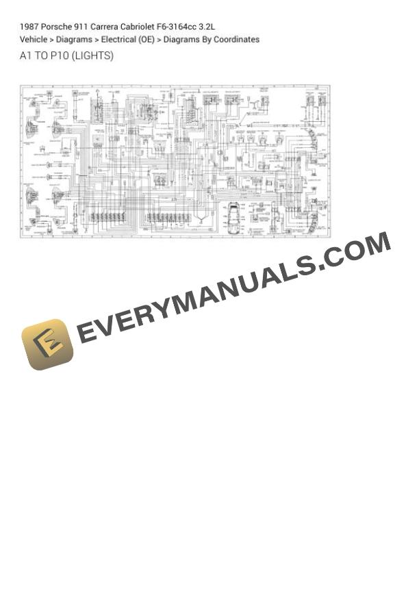 Porsche 911 Carrera Cabriolet 1987 Electrical Diagrams F6-3164cc 3.2L