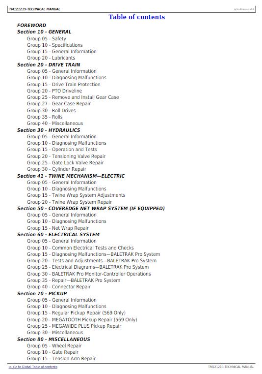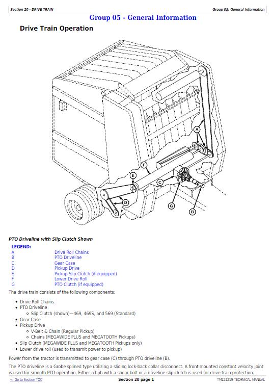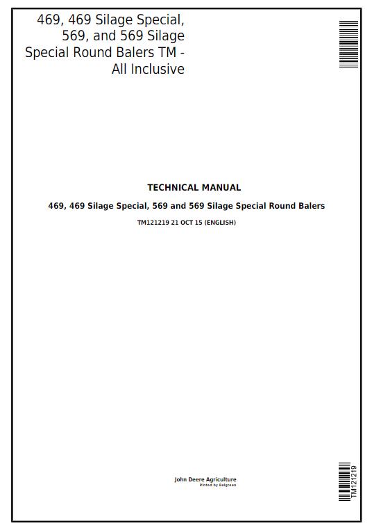 John Deere 469, 469S, 569S Silage Special, 569 Round Balers Service Manual TM121219