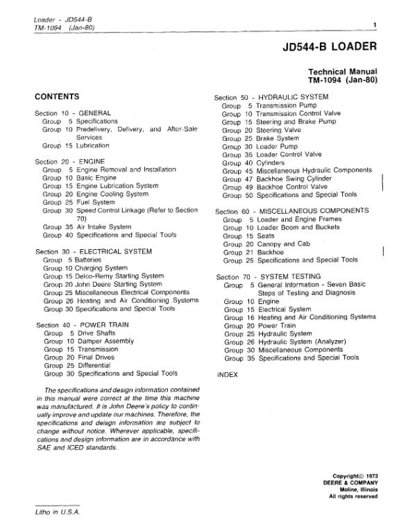 John Deere 544B Loader Technical Service Repair Manual TM1094 by E-BOOKS - Issuu