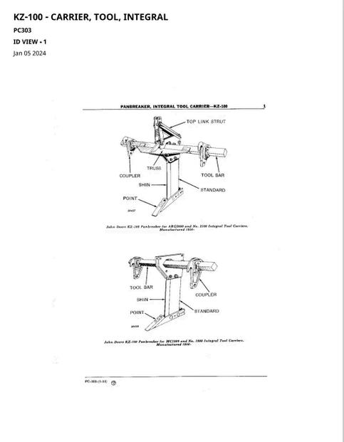 Explore our comprehensive John Deere KZ-100 Integral Tool Carrier Panbreaker Parts Catalogue Manual (PC303) for all your equipment needs.