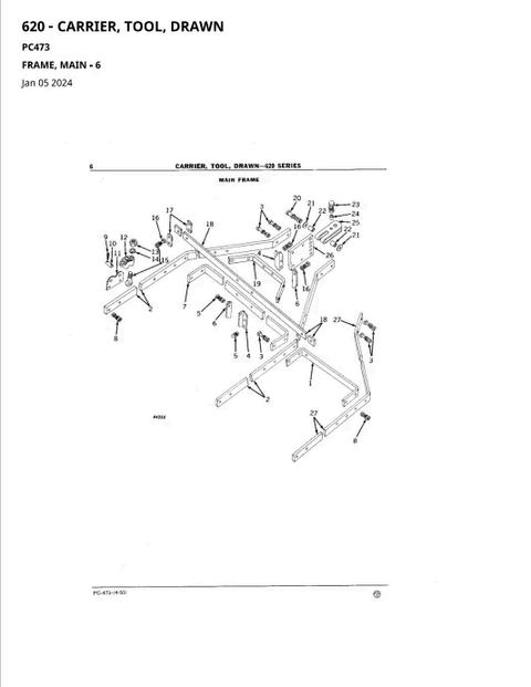 Explore our comprehensive John Deere 620 Series Drawn Tool Carrier Parts Catalogue Manual (PC473) for all your equipment needs.