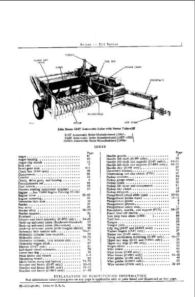 1. Explore our comprehensive John Deere 214 Baler Parts Catalogue Manual (PC551) for all your agricultural equipment needs.