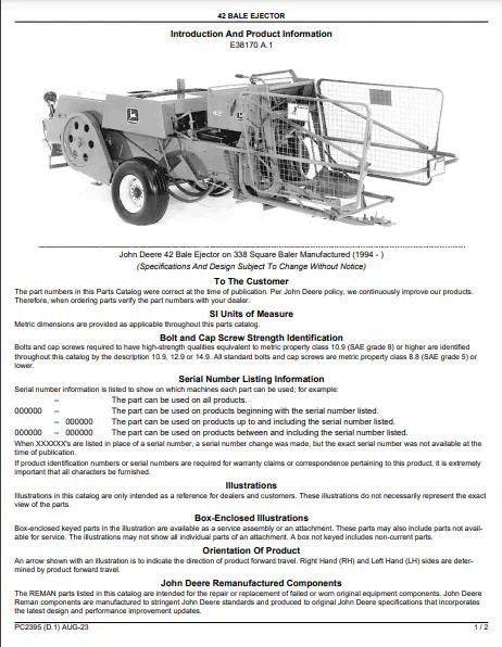 Explore our comprehensive John Deere 42 - Baler 42 Bale Ejector Parts Catalogue Manual (PC2395) for all your agricultural equipment needs.