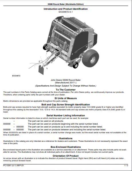 Discover a comprehensive parts catalogue manual for the John Deere 550M Baler Round. Find all the essential components you need in one place.