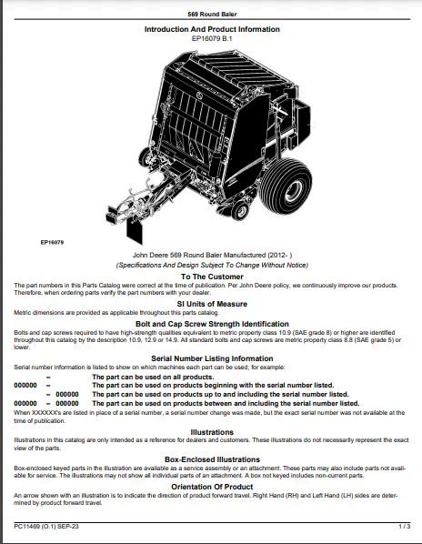Discover a comprehensive parts catalogue manual for the John Deere 569 Baler Round. Find all the essential components you need in one place.