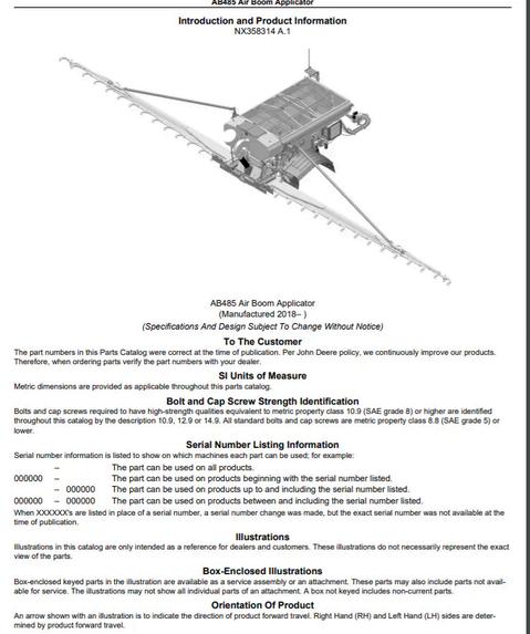 5. Ensure the longevity of your John Deere AB485 Air Boom Applicator with our reliable parts catalogue manual (PC13612). Find genuine replacements for efficient and reliable operation.