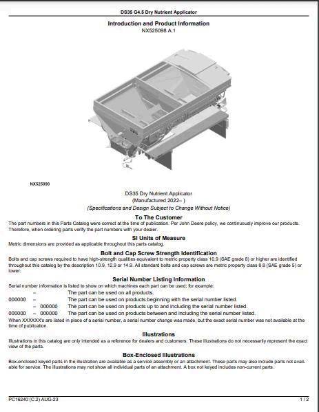 John Deere PC16240 Parts Manual DS35 - G4.5 Dry Nutrient Applicators by Service & Repair Info. - Issuu