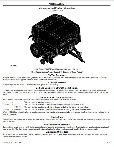 Discover a comprehensive parts catalogue manual for the John Deere F440E Baler Round. Find all the essential components you need in one place.