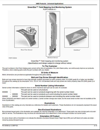 2. Discover the complete John Deere PC12439 Parts Catalogue Manual and browse through our extensive selection of Field Connect Attachments for universal applications.